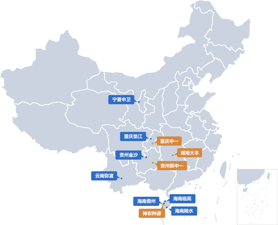 公司在湖南、重慶、貴州、海南儋州擁有4家核心子公司,業務覆蓋西南、華中、華東、華南等國內主要農作物種植區域,并拓展至東南亞、南亞、非洲等境外地區,建有專業化、區域化、精準化的育種、制種和營銷團隊。